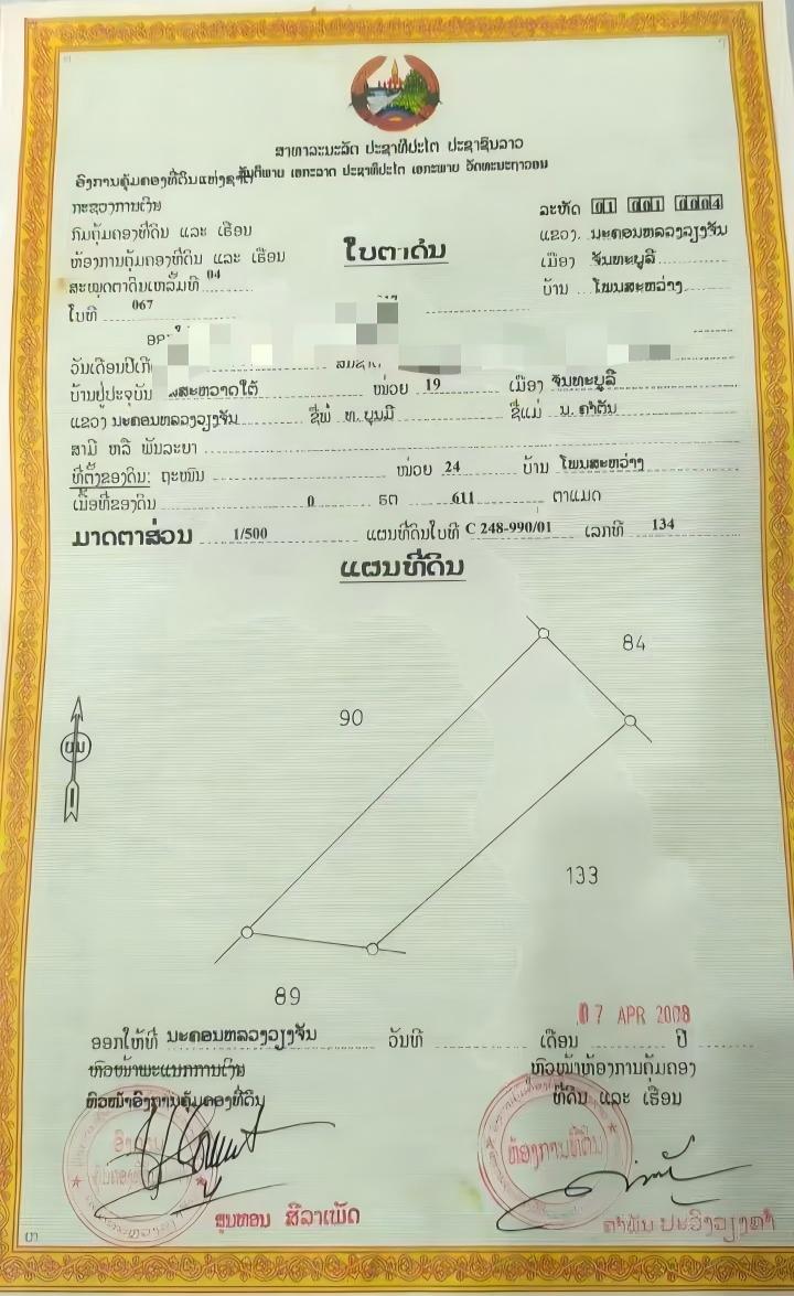 【土地出售】万象市内黄金地段1亩地+1独栋